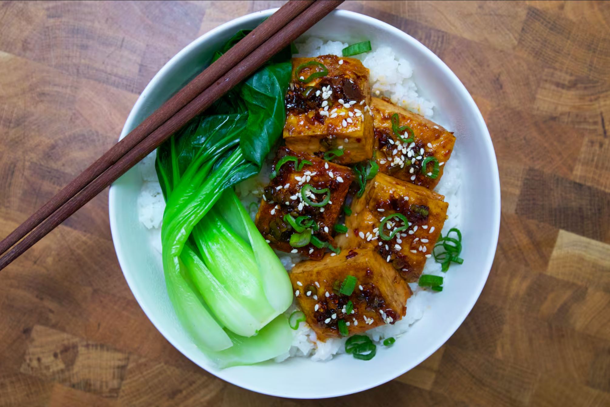 Puedes acompañarlo de arroz blanco o cualquier verdura escaldada, y el tofu es sustituible por otras proteínas como pollo, pero el tofu es el que mejor resultado da porque queda tierno y jugoso. Ojo, eso sí, a la hora de comprarlo: para esta receta lo necesitamos firme, que es el que suelen vender en la mayoría de supermercados, el blando o semi-duro se utiliza más en sopas y otras preparaciones.