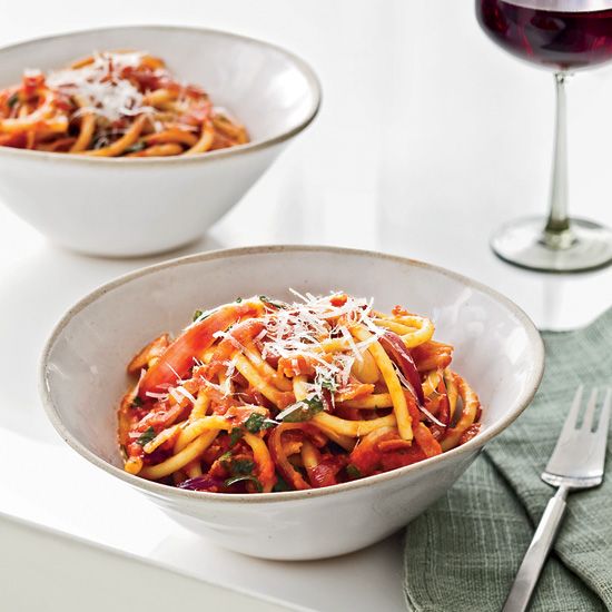 Llena de agua con sal una olla grande y llévala a ebullición. Cuando el agua esté hirviendo, cocina el Bucatini el tiempo que indica el fabricante para que la pasta quede al dente. No tapes la olla.