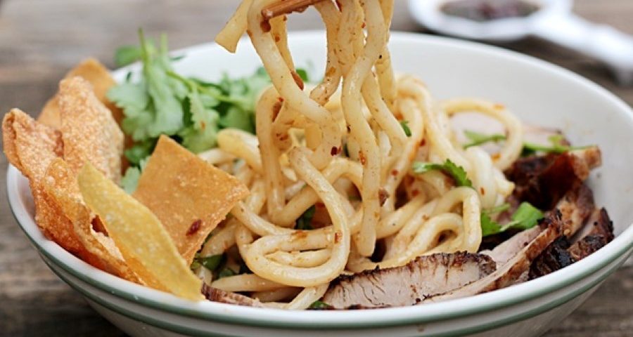 la receta de Cao Lau se elabora con unos fideos que llevan el mismo nombre. Si no puedes encontrarlos en tu tienda oriental habitual, los fideos soba japoneses son una buena alternativa, ya que tienen una textura similar.