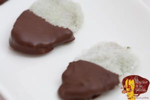 - Draga la fruta en el azúcar y colócala sobre una bandeja recubierta de papel pergamino. Hornea la fruta hasta que esté firme y seca, aproximadamente dos horas. Prepara la fruta en capas en un envase de almacenaje para comida hasta que esté lista para usar. Separa cada capa con papel encerado o pergamino.