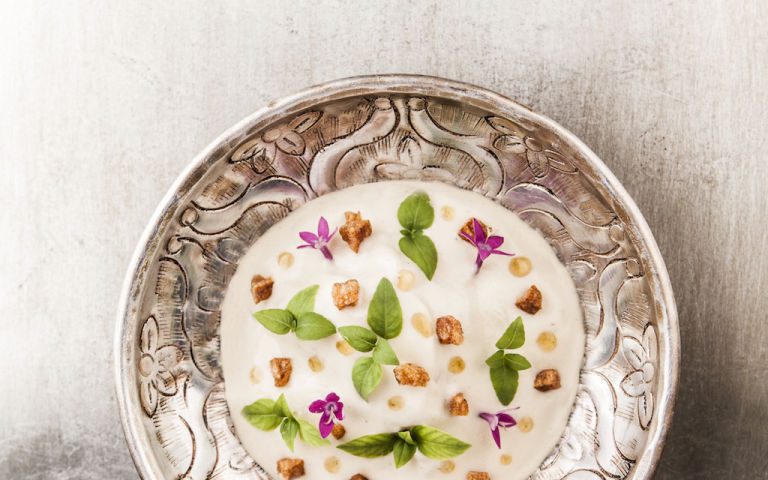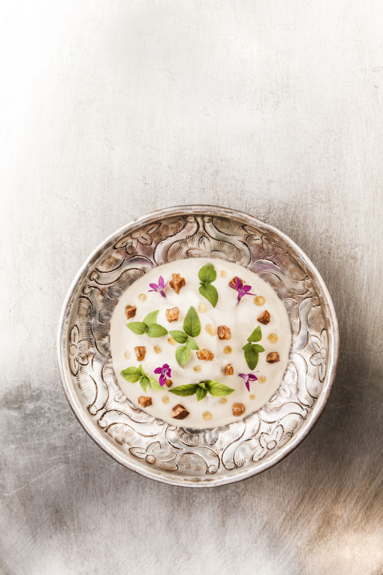 Mantequilla de coco: mezcla todos los ingredientes en una batidora o robot. Calienta el resultado a 85 ºC durante cinco minutos y después deja que se enfríe. Introduce la mezcla en un sifón y reserva.