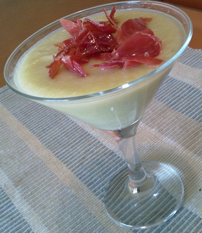 Encima del gazpacho, pon las láminas de jamón como acompañamiento y a degustar este sabroso y refrescante entrante.