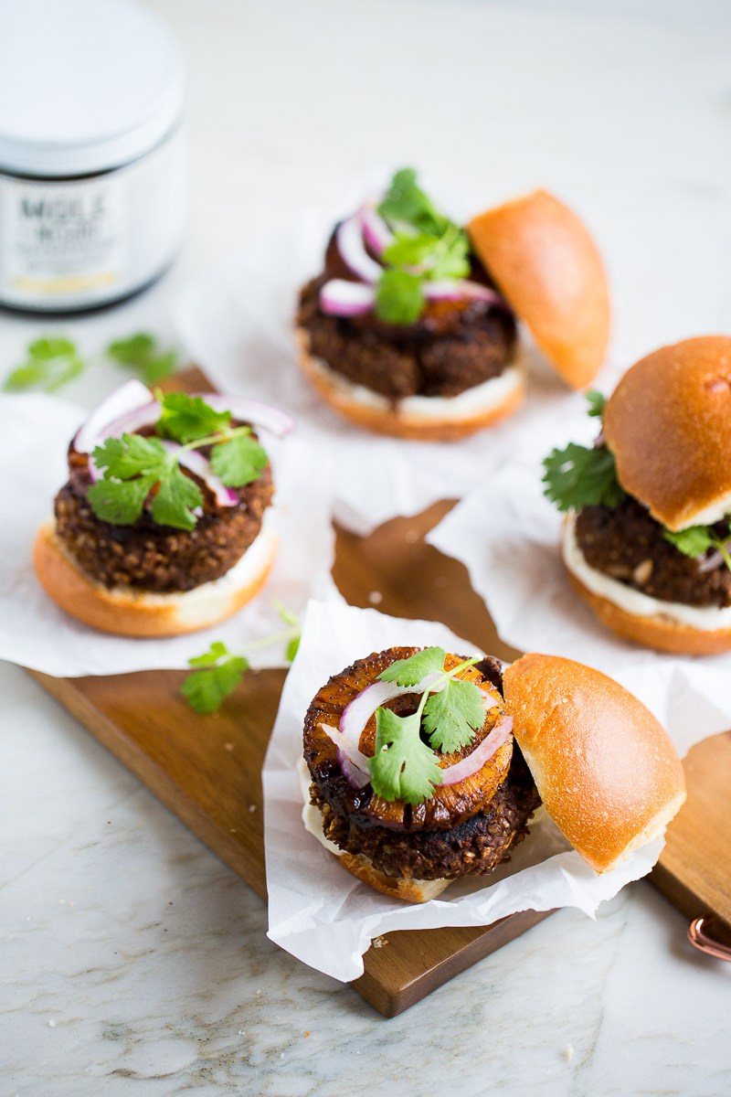 Hay tres tipos de mole: el coloradito, el mole negro y el mole rojo. Las hamburguesas de frijol están hechas con mole negro.