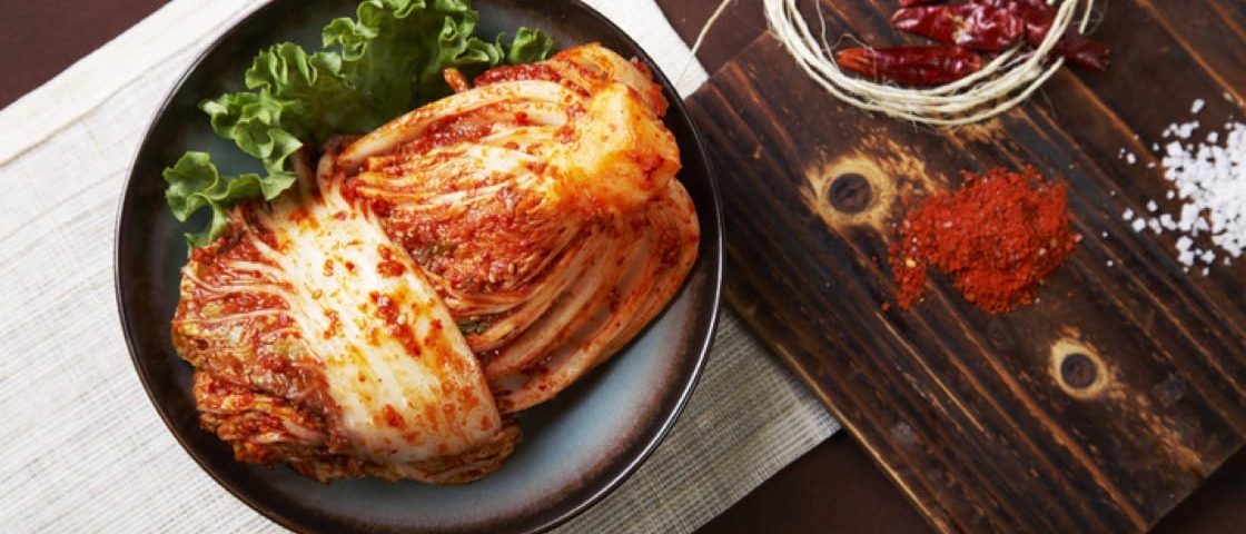 El kimchi es uno de los platos más conocidos de Corea consistente en col fermentada en un adobo de chiles y otros ingredientes. Suele servirse como acompañamiento a cualquier plato, siempre en pequeñas cantidades dado que tiene un sabor intenso y es bastante picante.