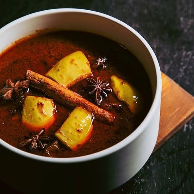 Sirve el curry muy caliente en un bol. Puedes decorar con un anis estrellado.