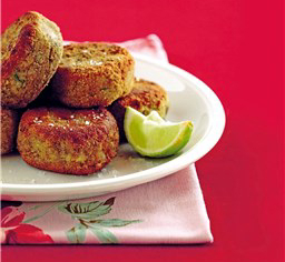 Sirve junto a una mayonesa con wasabi y rodajas de lima.