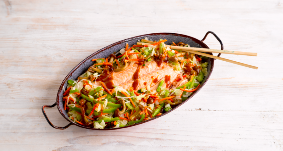 Cocina durante unos 4-5 minutos con la tapa puesta hasta que el salmón esté perfectamente cocinado. Añade la mantequilla al final y deja que se derrita por todo el plato.