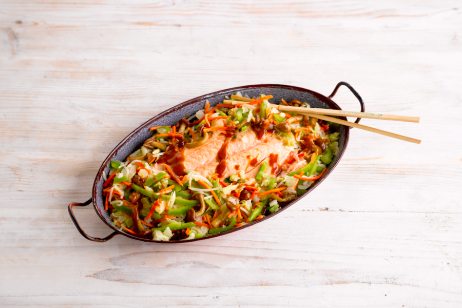 Cocina durante unos 4-5 minutos con la tapa puesta hasta que el salmón esté perfectamente cocinado. Añade la mantequilla al final y deja que se derrita por todo el plato.