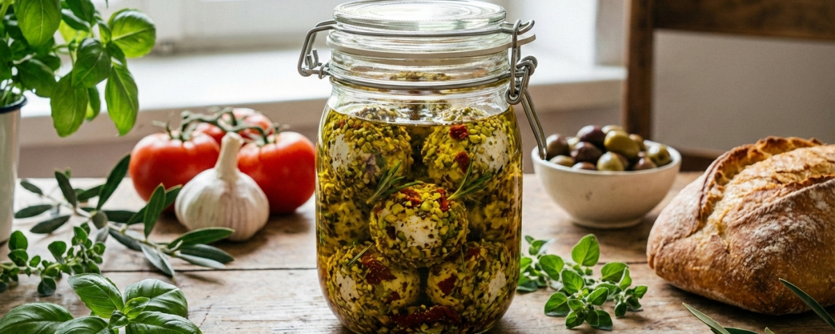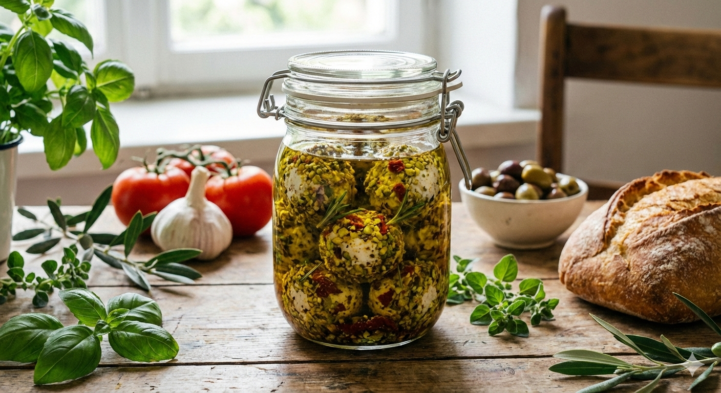 Introduce las bolas en un tarro con aceite de oliva virgen extra y puedes comerlas al día siguiente. En el bote te durarán semanas.
