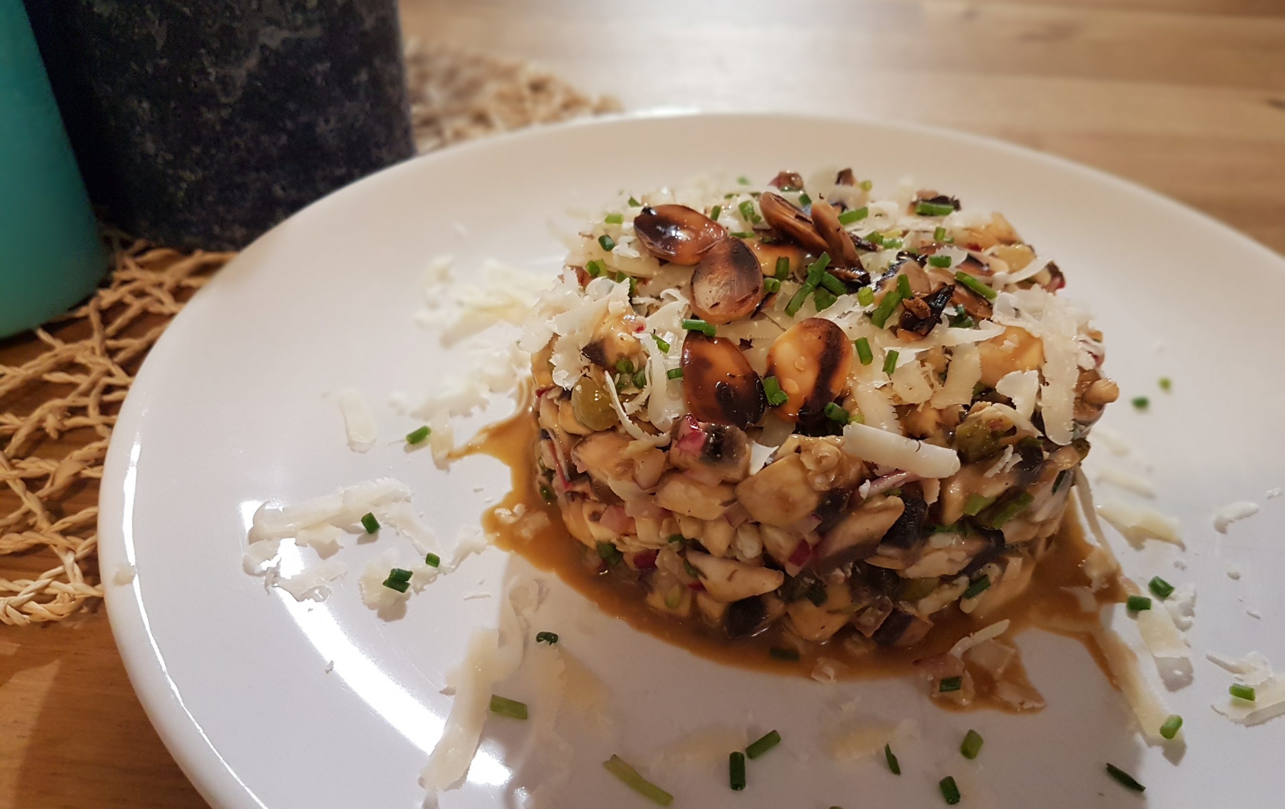 Cocinar con verduras crudas va mucho más allá de cualquier movimiento raw food de moda y, aunque en Instagram queden preciosas, la realidad es que son además platos deliciosos. Es verdad que hay algunas verduras y hortalizas generalmente más pensadas para tratar en crudo y que solemos encontrar en ensaladas clásicas (tomate, pimiento, cebolla, zanahoria) pero hay algunas que, aunque no lo parezca, también quedan estupendas sin pasar por el calor. Hablo por ejemplo de la coliflor o el brócoli rallados tratados como un cuscús, de los calabacines finísimamente cortados como un carpaccio o de los champiñones que son resultones tanto laminados como bien picados. Ejemplo de ello es este tartar de champiñón aliñado casi como si de un steak tartare se tratara.