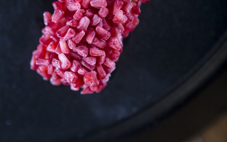 Para la frambuesa desgranada: congela las frambuesas frescas. Cuando estén, separa los granos uno a uno y guárdalos en un recipiente hermético en el congelador.