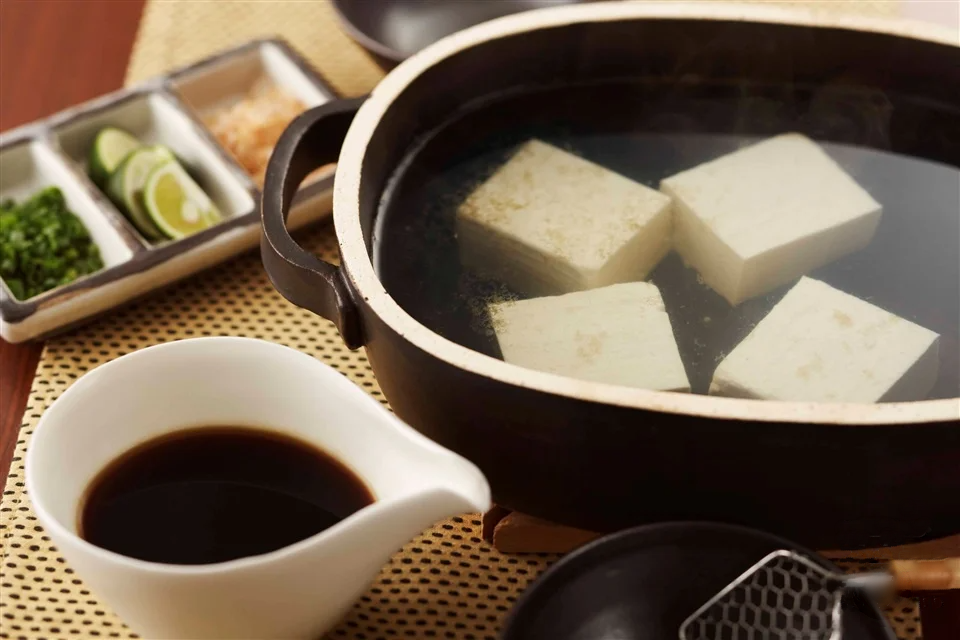 El tofu está hecho de leche de soja, que se obtiene exprimiendo el zumo de los granos de soja y cuajándolo con nigari, un agente coagulante. A los japoneses les encanta la refrescante e intensa fragancia de la soja y la textura suave de la cuajada. Hoy en día el tofu está en boga por ser un alimento saludable, ya que está repleto de nutrientes como proteínas, vitaminas y minerales y lejos quedó aquello de «pero si no sabe a nada!».